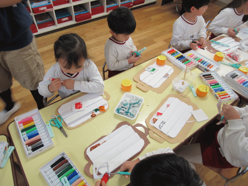 やってみせてみると、子どもたちは大笑い♪興味津々で、どんどん作り進める様子が見られました☆