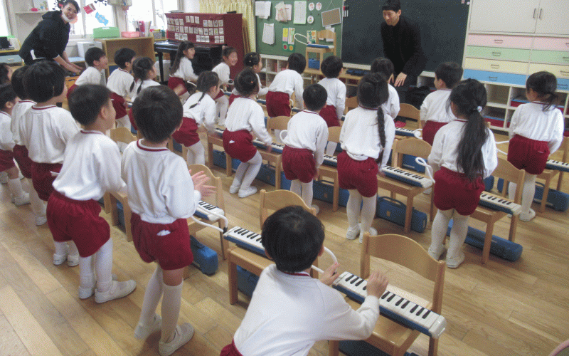 今日は、音楽の講師の先生に来ていただき、鍵盤ハーモニカ指導をしていただきました☆