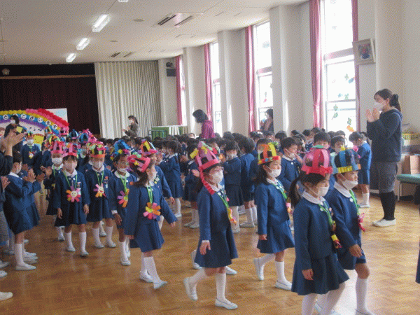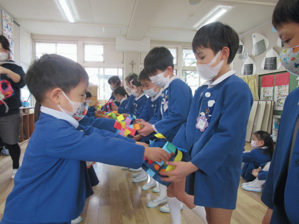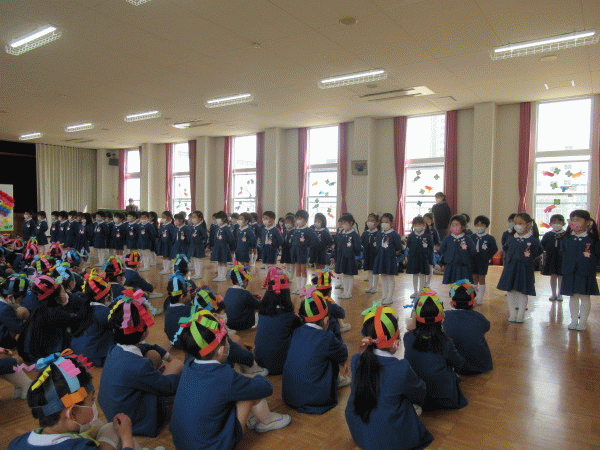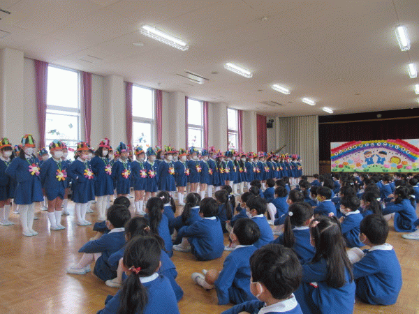 先日、今までたくさん遊んでくれた年長組さんのお別れ会を遊戯室で行いました♪