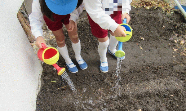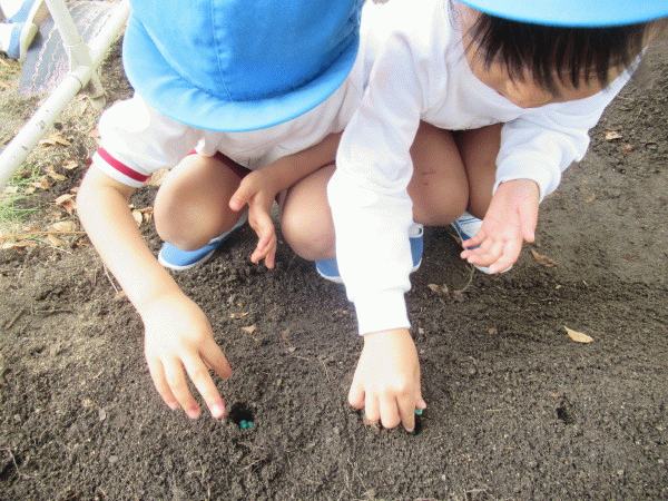 球根を見て、『おっきい〜!!』『玉ねぎみたい〜!』と興味津々(*^-^*)