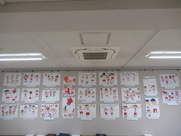 年中組の10月の壁面は、クレパス画の「運動会の絵」です!!