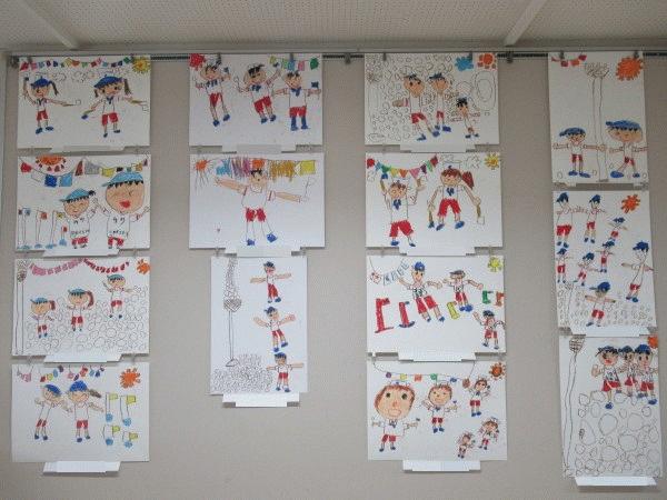 かけっこや玉入れ、ダンスをしている場面を、伸び伸びと描くことができました☆