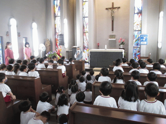お御堂に行く前に、クラスで「お御堂とはどんなところなのか」というお話を聞き、心を静かにして行きました。