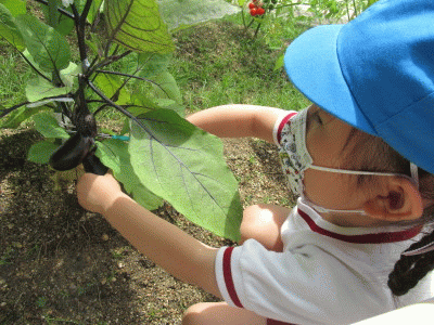 ☆年中組 なすびを収穫して食べました☆