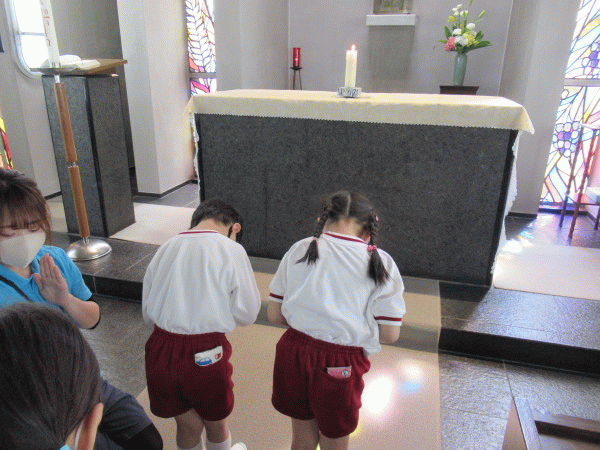 そして「たくさんのことに挑戦しながら、いろいろなことを学び、素敵なお兄さんお姉さんになれますように・・・」とお祈りしました。
