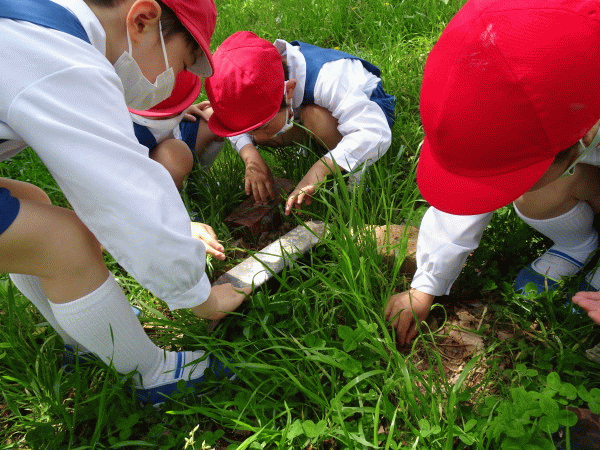 お外を覗いてみるとちょうちょやダンゴ虫など、たくさんの虫さんがお散歩をしています♪