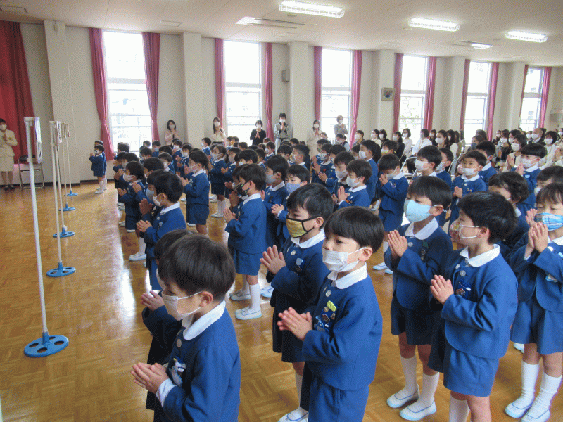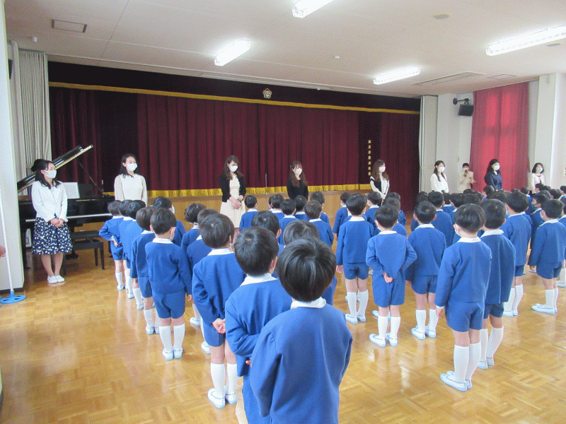 登園時は、少し肌寒く感じられましたが、入園式が終わった頃には、あたたかい光がみんなを包んで、子どもたちやお家の人たちの笑顔が輝く一日となりました。