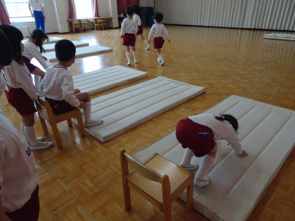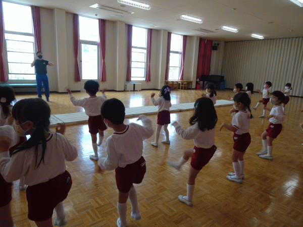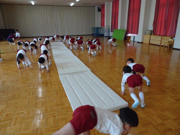 年中組に引き続きの体育ですが、年長組になって初めてということで、子どもたちもとても楽しみにしていました(^O^)