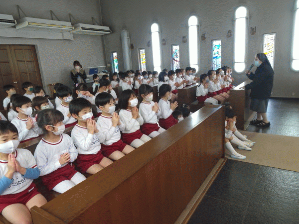 生憎の雨模様でしたが、みんなで安全に楽しく遊べるよう部屋でお祈りをして出発しました。