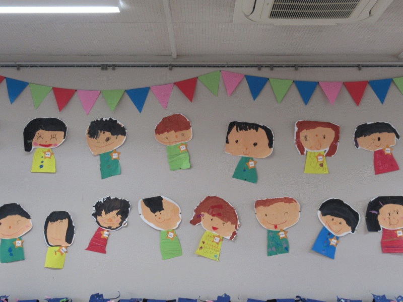 年少組の3月の壁面は「自分の顔」です!