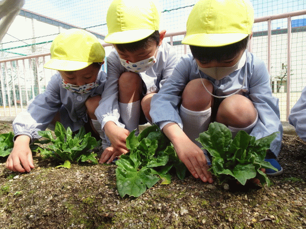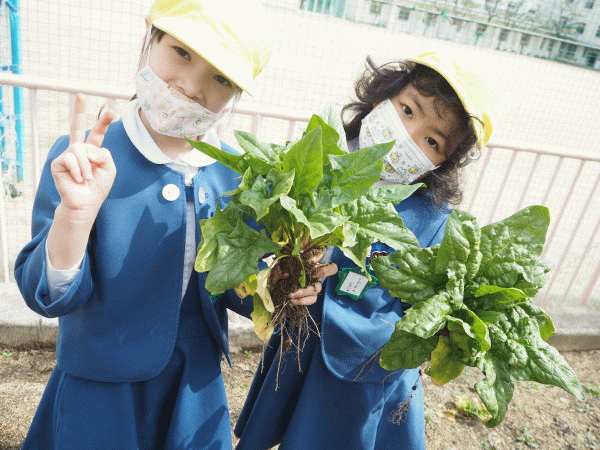 年長組 ほうれん草を収穫しました☆