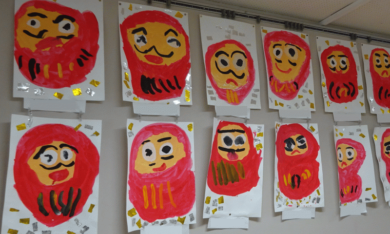 顔の描き方によって、笑っているような顔や怒っているような顔・・・いろんな表情をしただるまがたくさん出来ました♪