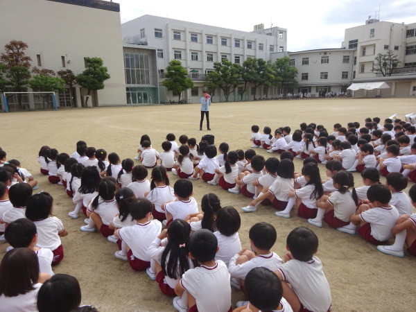 園長先生からは、炎や煙は上へあがっていくので、どこにいても下に逃げるように気をつけることや、逃げるときには、「お・は・し・も」の約束を守ることをお話していただきました。