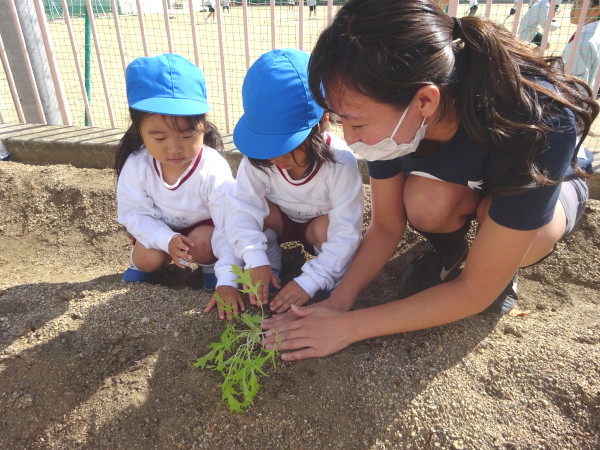 冬の野菜を植えることを伝えると、「やったー!」「なんのお野菜ー?☆」と喜ぶ姿がありました♪