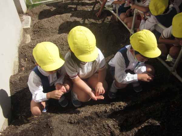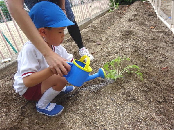 今日は、年長組でほうれん草と、はつか大根の種を植えました☆