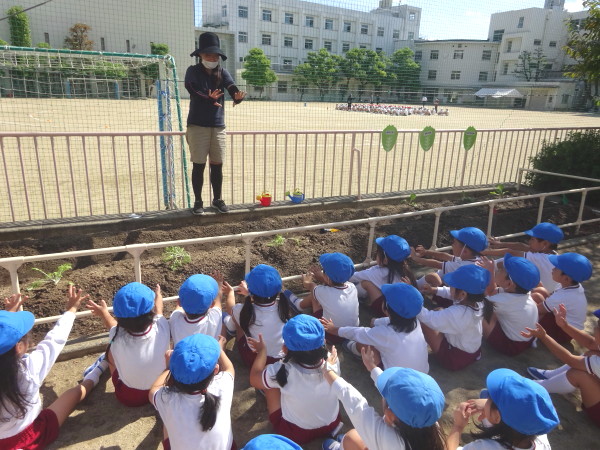 いつもみんなが見ているお野菜とは姿が全く違い、種の小ささや苗に驚く姿が見られました!!