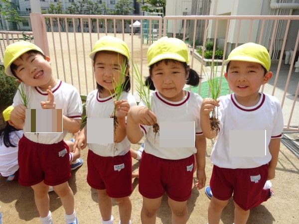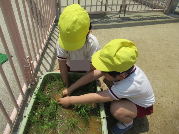 年長組では、みんなで稲の苗植えをしました♪