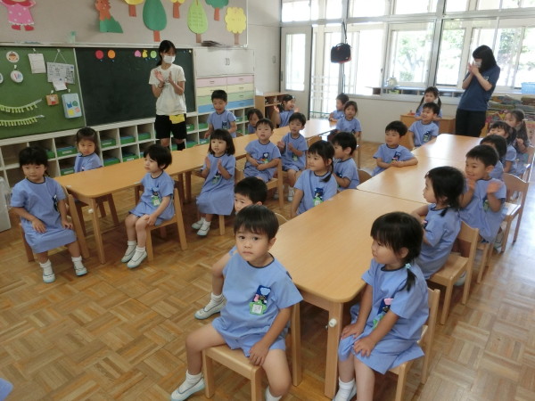 「何をくれるのかな・・・」と楽しみに待っていた年少組の子ども達♪(^0^)