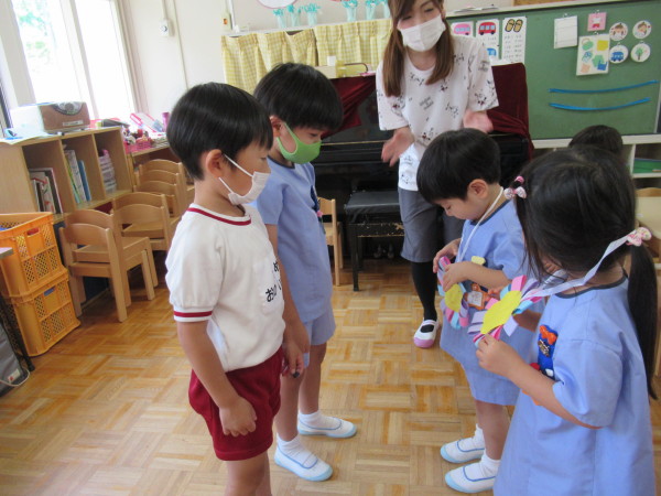 年長の代表の子どもたちが、年少組のお部屋に行って