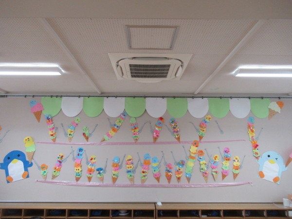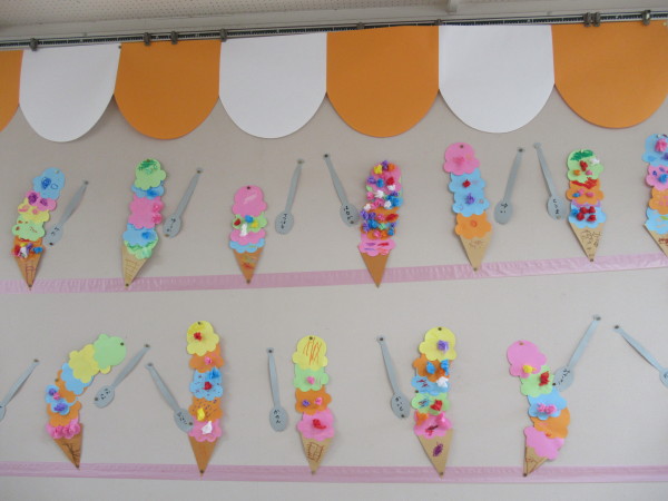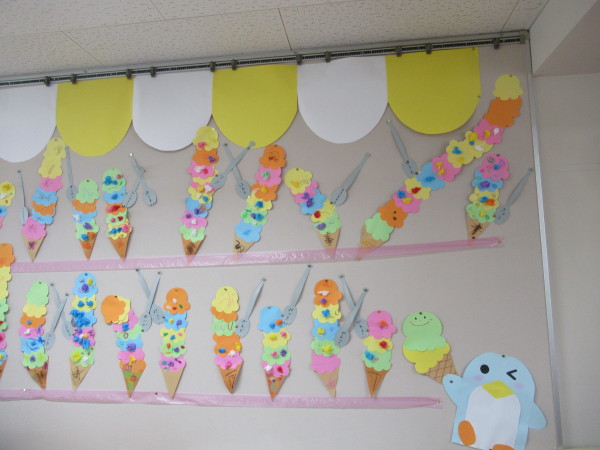 年少組では、7月の壁面に『アイスクリーム』を作りました!!