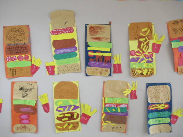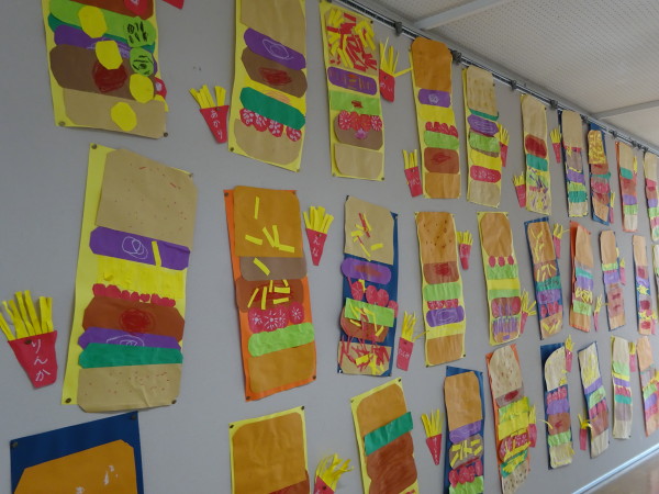 子どもたちの作品を飾って『ハンバーガー屋さん』の完成!