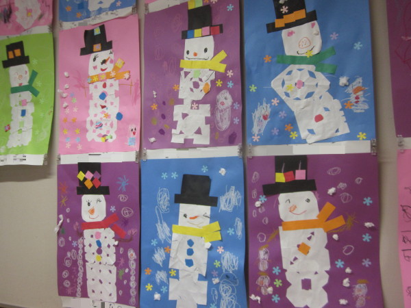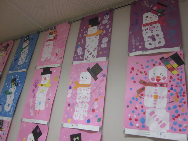 子どもたちの可愛らしい、素敵な雪だるまたちが出来上がりました♪