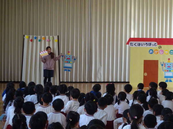 続いて、園長先生から、バレンタインについてのお話や生活発表会、そして寒さに負けないような温かい心で過ごすことの大切さについてお話をして頂きました!!