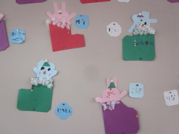 とっても可愛らしいくつしたの壁面飾りが出来上がりました☆