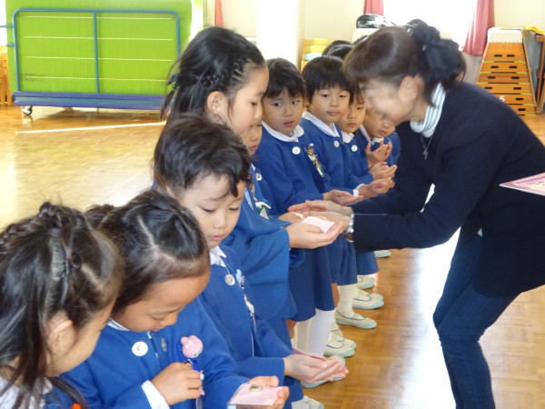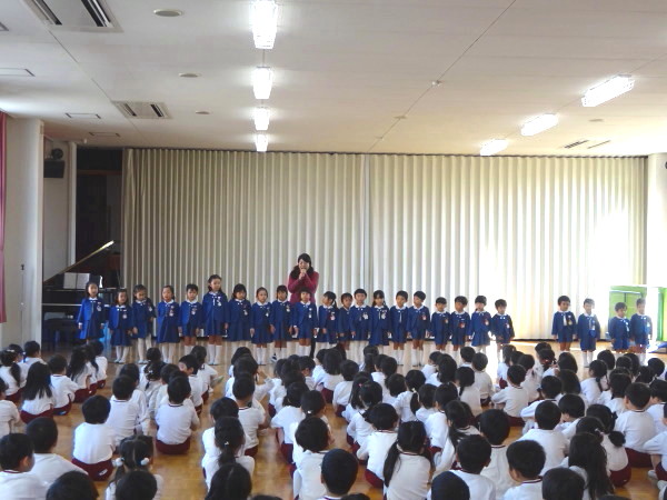 その後は、「昨日のクリスマス会では、よく頑張りましたね」「色々な人に“ありがとう”の気持ちを持って過ごしましょう」そして、「寒い日が多いけれど、風邪をひかないように元気に過ごしましょう」とお話を頂きました。