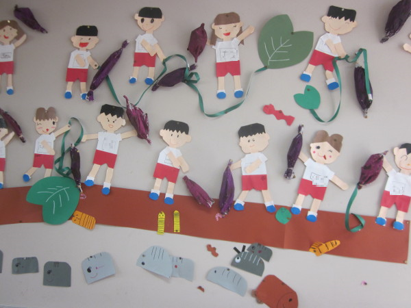 年長組の11月壁面は、制作「いもほり」です!