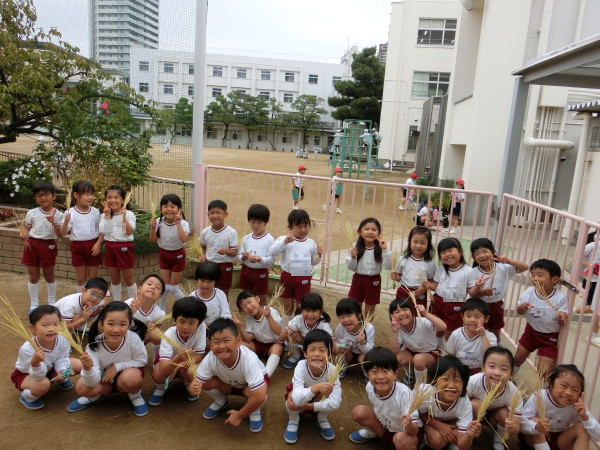 途中で、すずめさんに食べられてしまうこともありましたが、無事、みんなで収穫することができました。