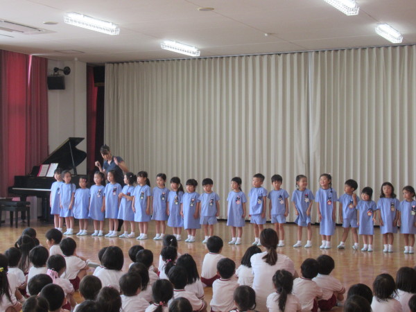 4月から新たにスタートした幼稚園生活に、ドキドキ、ワクワクしながら過ごした1学期も、今日で終わりとなり、終業式が行われました。