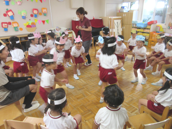 3日目は、年長組のみんなが遊戯室に集まって