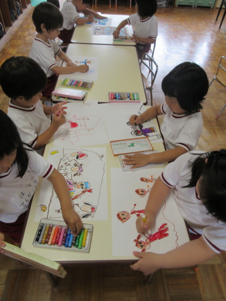 幼稚園に来た子ども達は、「夏休み〜したよ!」「〜に行ったよ!」と