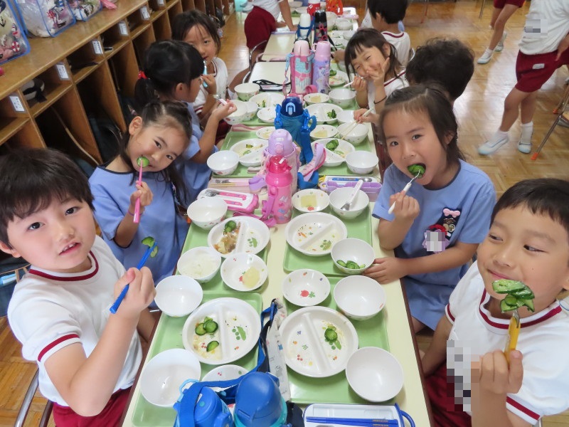 苦手な子どもたちも、自分たちで育てたきゅうりとピーマンということもあり、「おいしい〜」といいながら食べる姿がありました♪♪