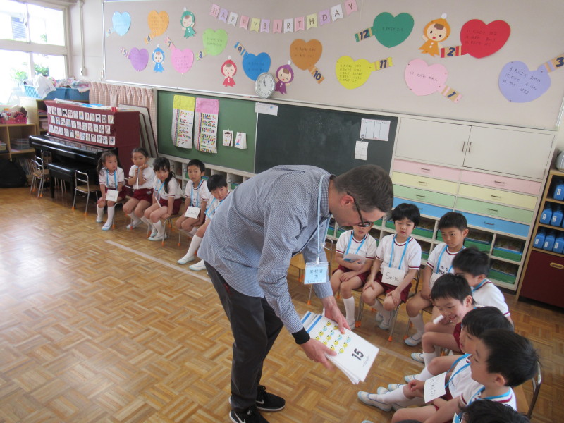 英語では、ドン先生との自己紹介に照れながらも