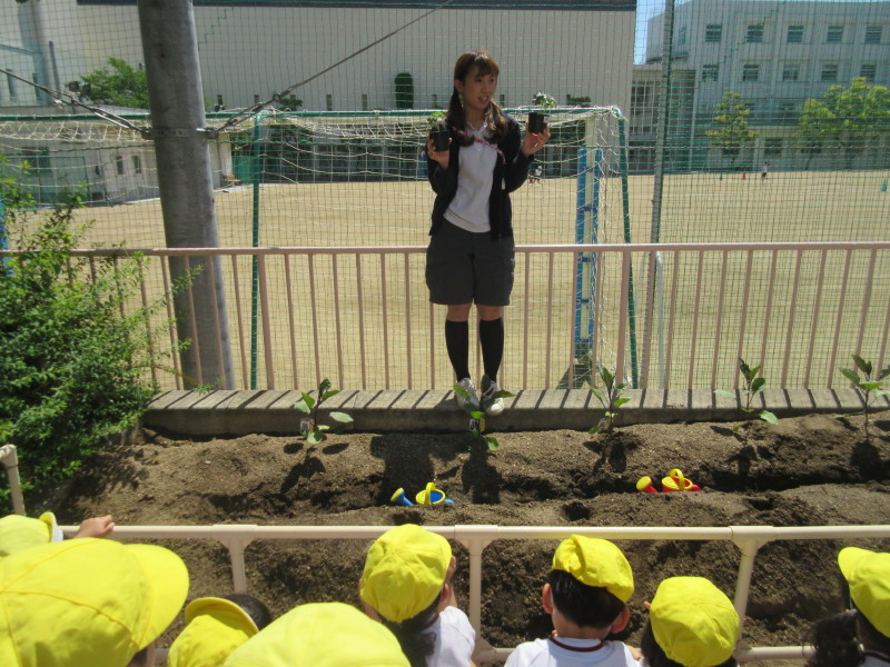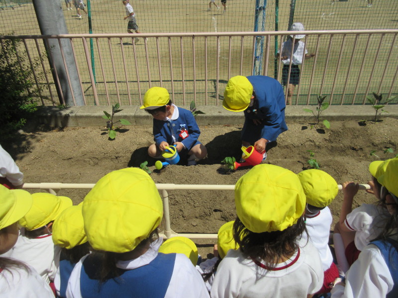 お天気も良かった今日は、年中組でオクラを植えました(^^♪