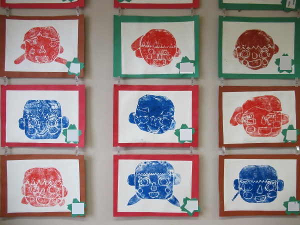年長組の2月壁面は、版画『自画像』です♪
