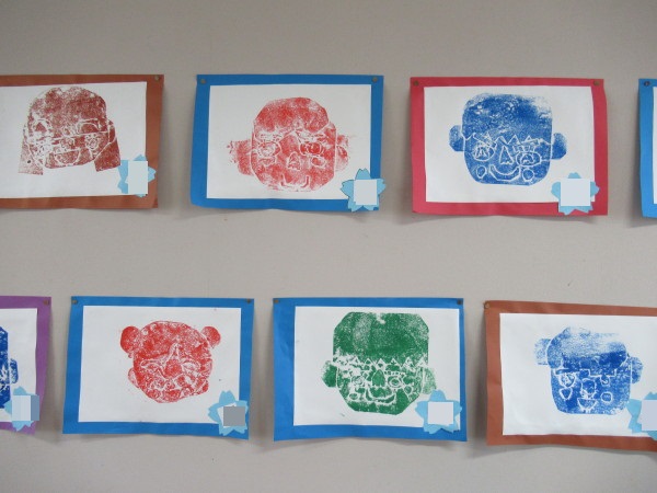 先日の園開放で紙制作した自分の顔を版画にしました。