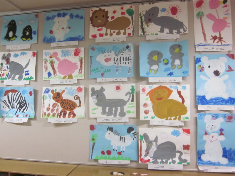 年中組11月の壁面は、絵画「どうぶつ」です。