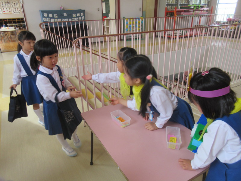今日は、年長さんみんなで協力し合いながら取り組んできた『城星デパート』のOPENでした(^^)招待状をもらった年少さん、年中さんは朝からわくわくドキドキ・・・とっても楽しみにしていました♪
