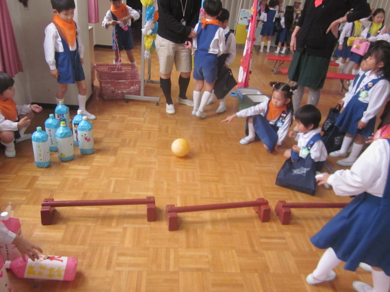 子どもたちは目をキラキラと輝かせて、玉を拾ってはカゴに向かって投げるという姿が見られました。また、お片付け競争でもみんなで力を合わせて、お片付けをすることが出来ました!