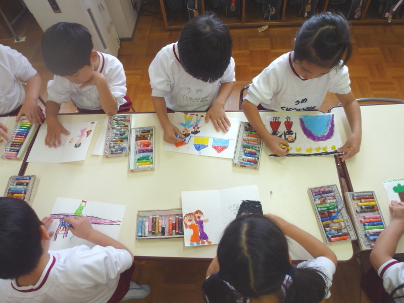 年長組では、『絵本制作』を行いました!以前、わんぱくだんのお話を読んでもらった子どもたち♪今度は自分がわんぱくだんになったら、どこに探検に行きたいかな?と