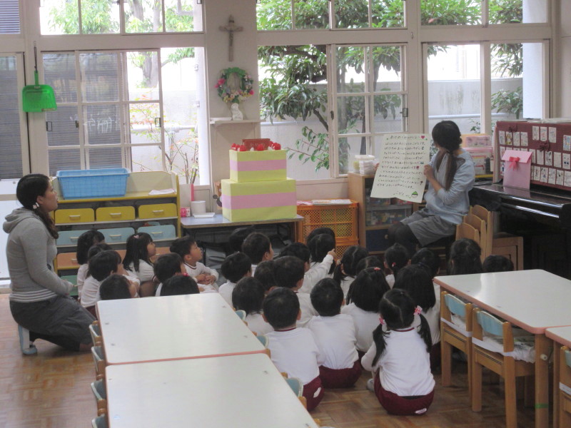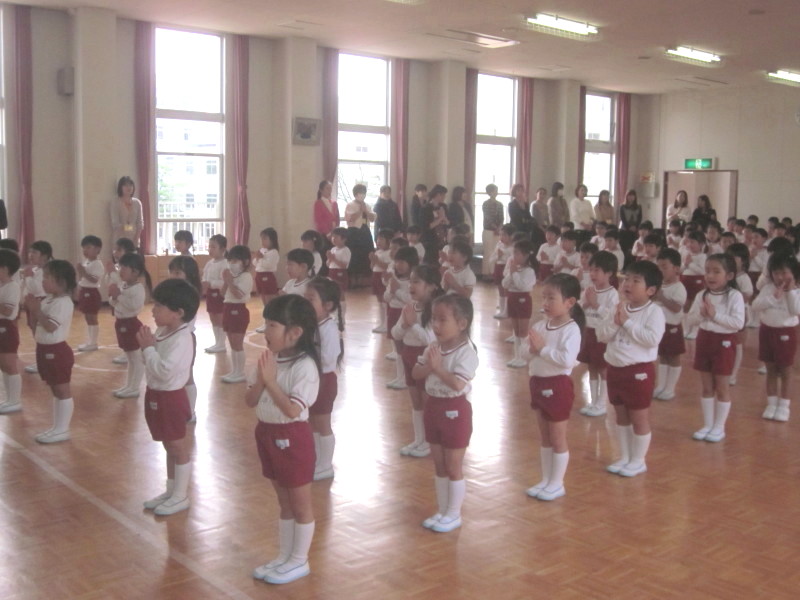 今日は、学年活動です!!遊戯室に年中組が集まって、合同朝礼をしました。お祈りをお捧げして、元気よく体操をします♪