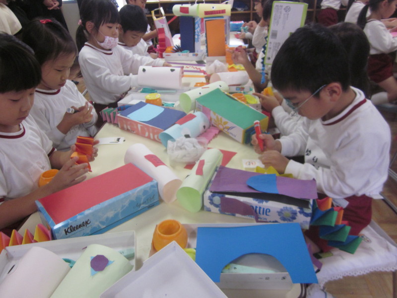年中組は、ティッシュの箱を使って自分のロボットを制作しました!!