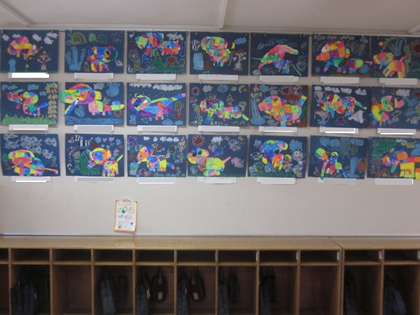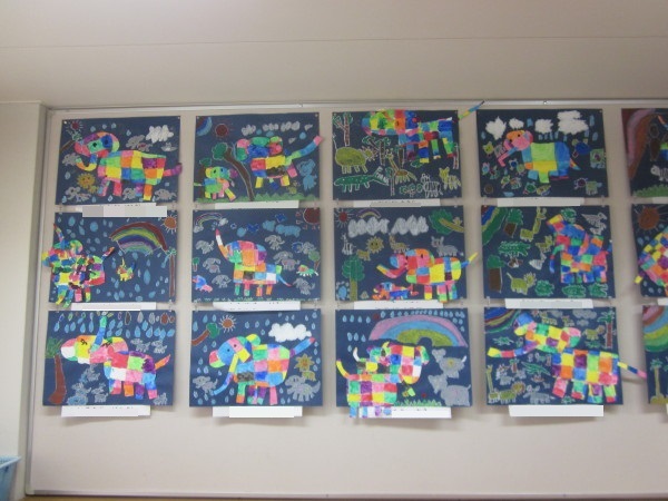 最後にエルマーを画用紙に貼りつけ足し絵をして完成☆