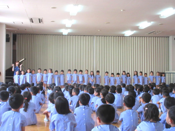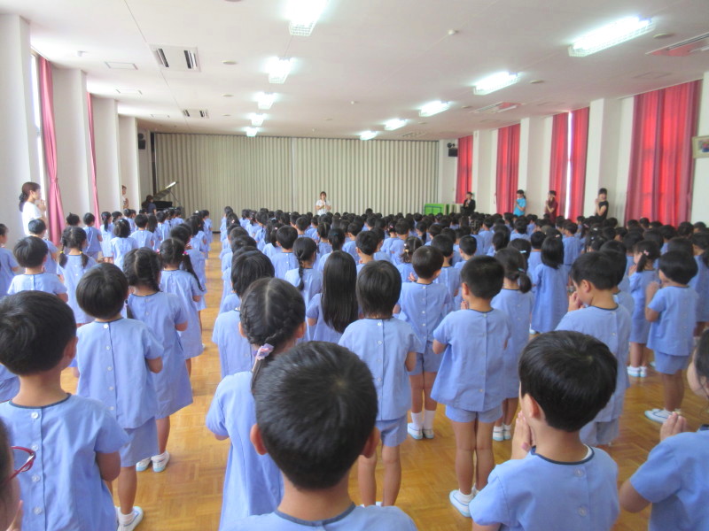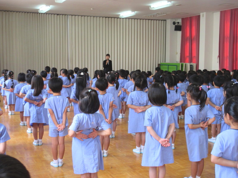 園長先生から、夏休みの過ごし方についてや、「いつもそばにいて見守ってくださっている神様と、毎日お話をしてお祈りをしましょうね」とお話をしてくださいました。