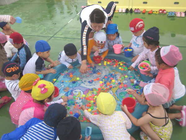 水着に着替えるときには、ウキウキワクワクしながら、お友達と水着を見せ合う様子が見られました☆