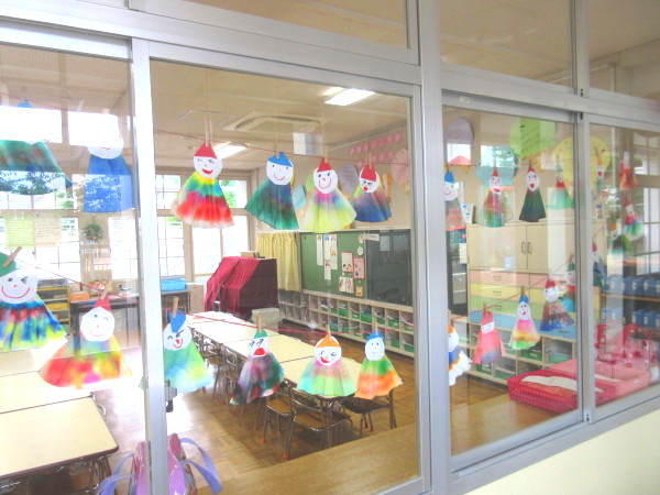 てるてる坊主の体の部分は、マジックでにじみ絵にしました(*^_^*)