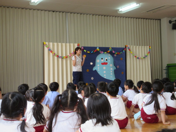 6月のお誕生日のお友達が前に並び、みんなで名前を呼んで紹介をしました。